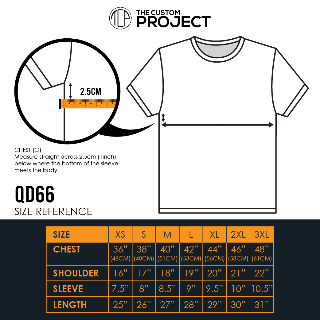 – 3XL : Chest 61cm / Length 78cm