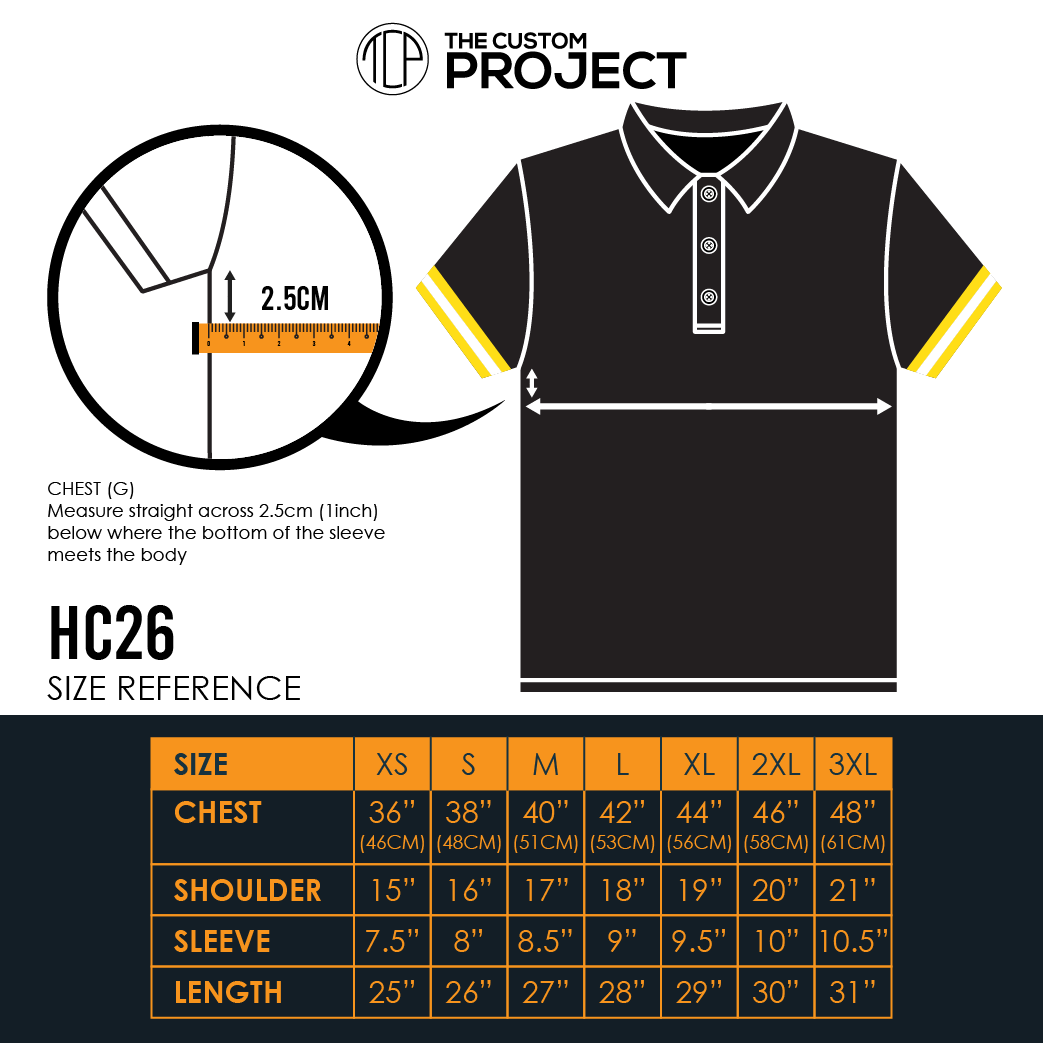 – 3XL : Chest 61cm / Length 79cm